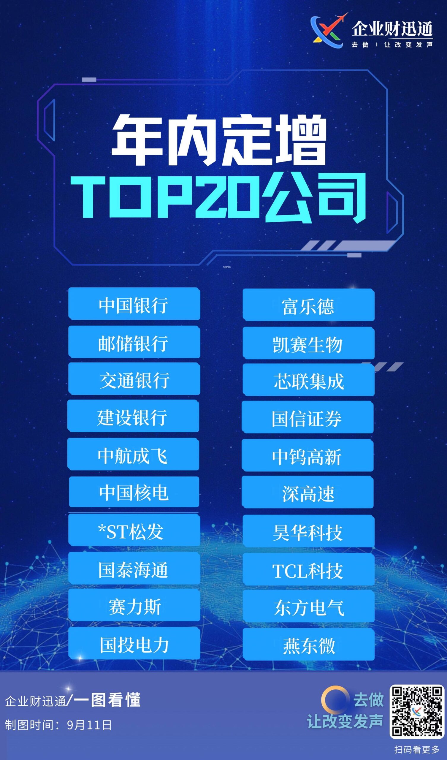 年内定增领域表现突出的 TOP20 公司,涵盖金融、科技、制造、能源等多行业头部企业,直观反映出各行业优质企业借助定增这一资本运作方式,在拓展业务、强化核心竞争力等方面的布局与动向,为观察资本市场资源配置及行业发展态势提供了关键视角。