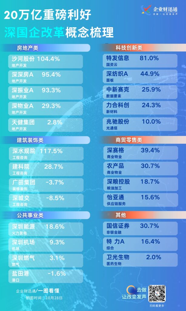 整体呈现了在深圳国企改革背景下,不同行业国企相关企业的市场表现情况。
