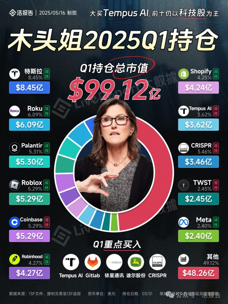 关于 “木头姐” 2025 年第一季度(Q1)的持仓情况分析图。
