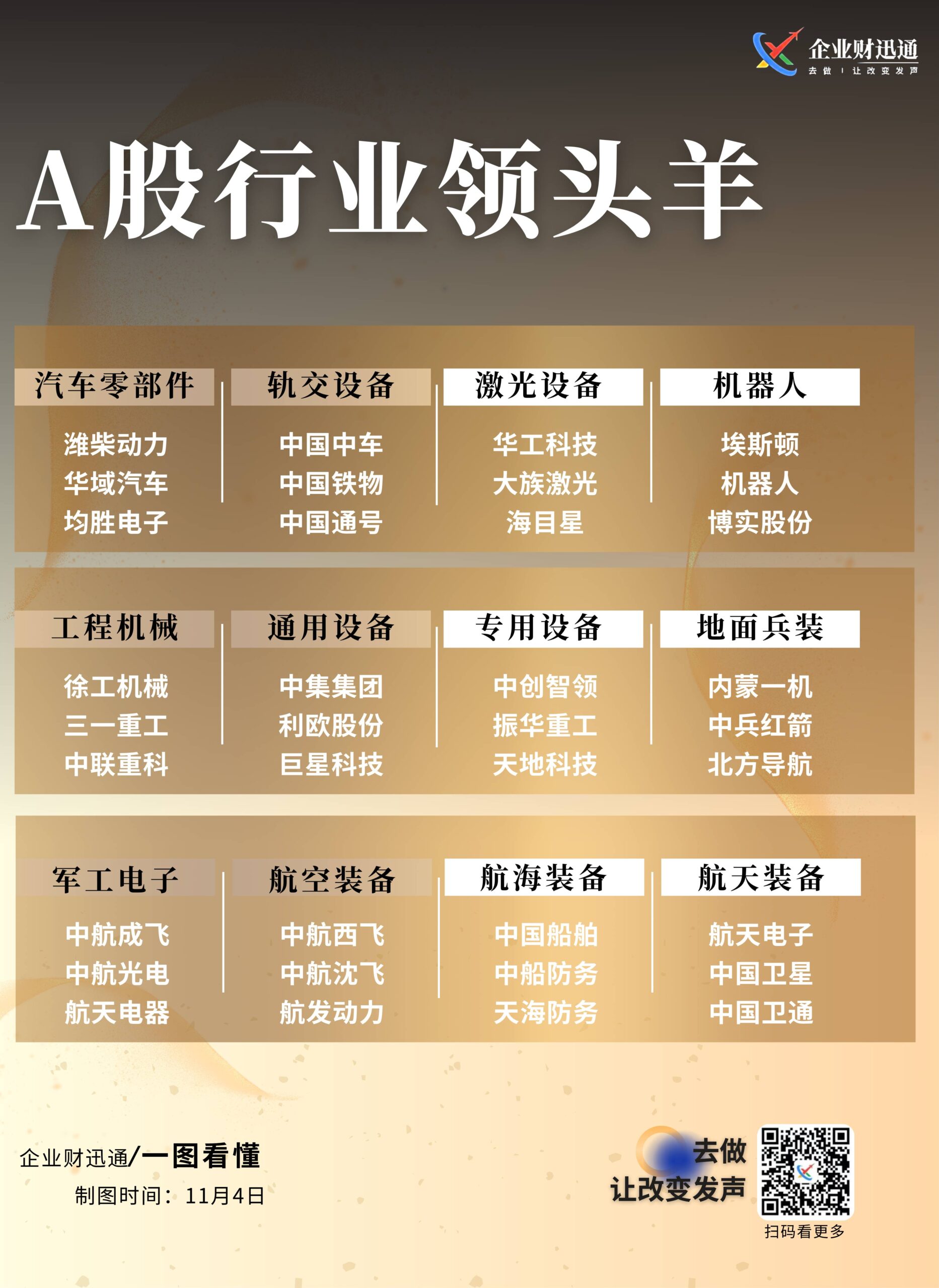该图以清晰的分类和直观的呈现方式,为投资者快速识别各行业核心标的、把握市场布局提供了有力参考,助力其在 A 股市场中更精准地关注各行业领军力量的发展动态与投资价值。