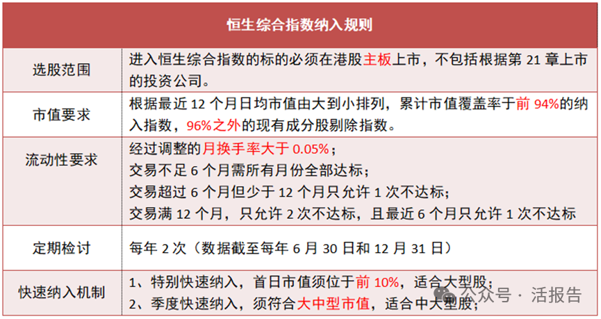 恒生综合指数的纳入规则,可从以下几个维度分析: