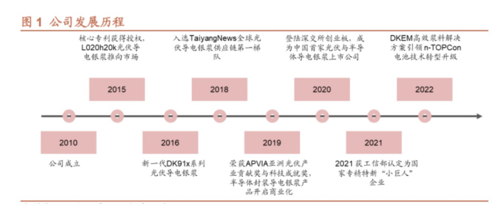2020年,公司在创业板成功上市,成为国内首家覆盖光伏与半导体导电银浆领域的上市公司。2022年,受益于N型电池产业化趋势,公司推出的N型系列浆料进一步带动经营规模稳步扩张。在行业降本增效的大背景下,公司在降银技术上的突破,有望为其发展开辟新的增长空间。