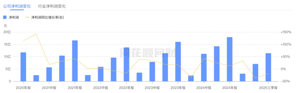 2025年前三季度,公司营收突破百亿,达100.86亿元,同比增长14.38%,呈现回暖迹象;但归母净利润却同比下降19.76%,至11.41亿元,“增收不增利”现象依然存在。