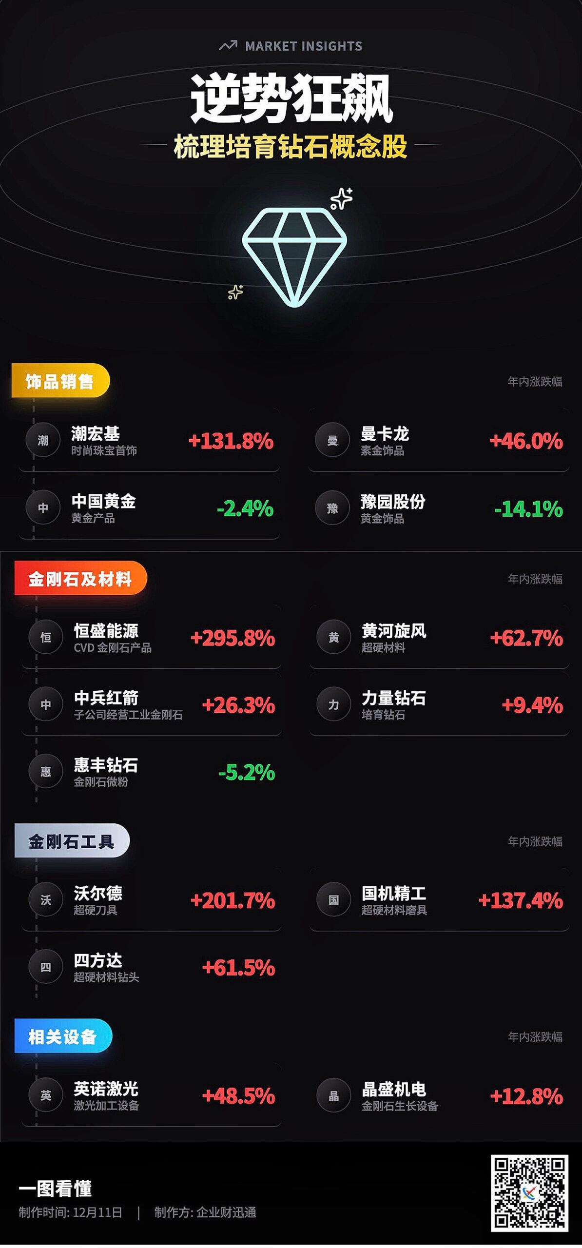 整体呈现培育钻石相关板块多数企业年内股价 “逆势狂飙” 的特点。