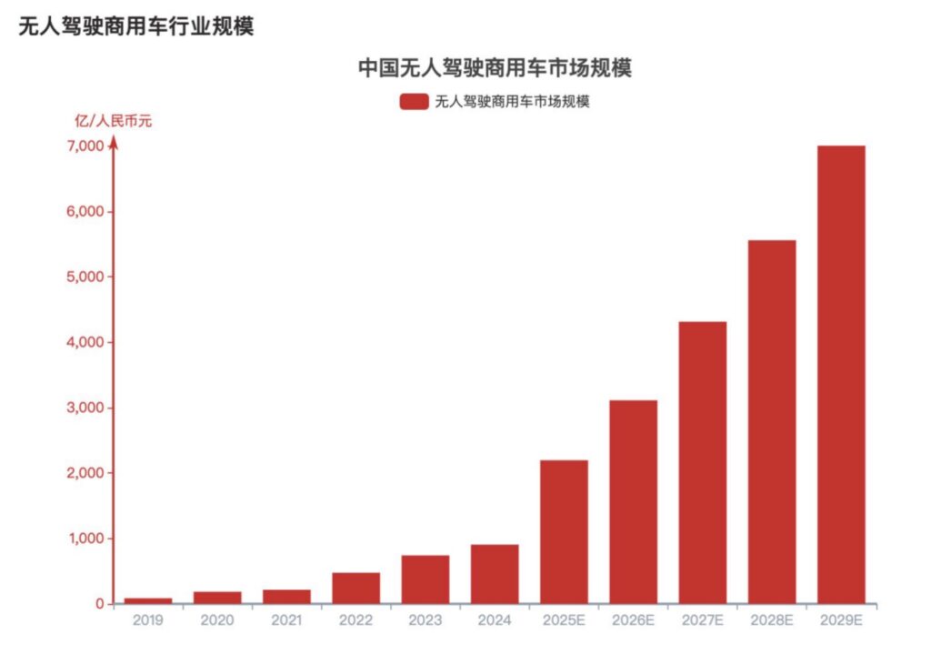 头豹研究院指出,据行业分析,中国无人驾驶商用车市场正处在快速增长通道。2019年至2024年,市场规模复合增长率高达59.98%,2024年规模已达906亿元。预计2025至2029年,复合增长率将保持在33.64%,到2029年市场规模有望突破7000亿元。