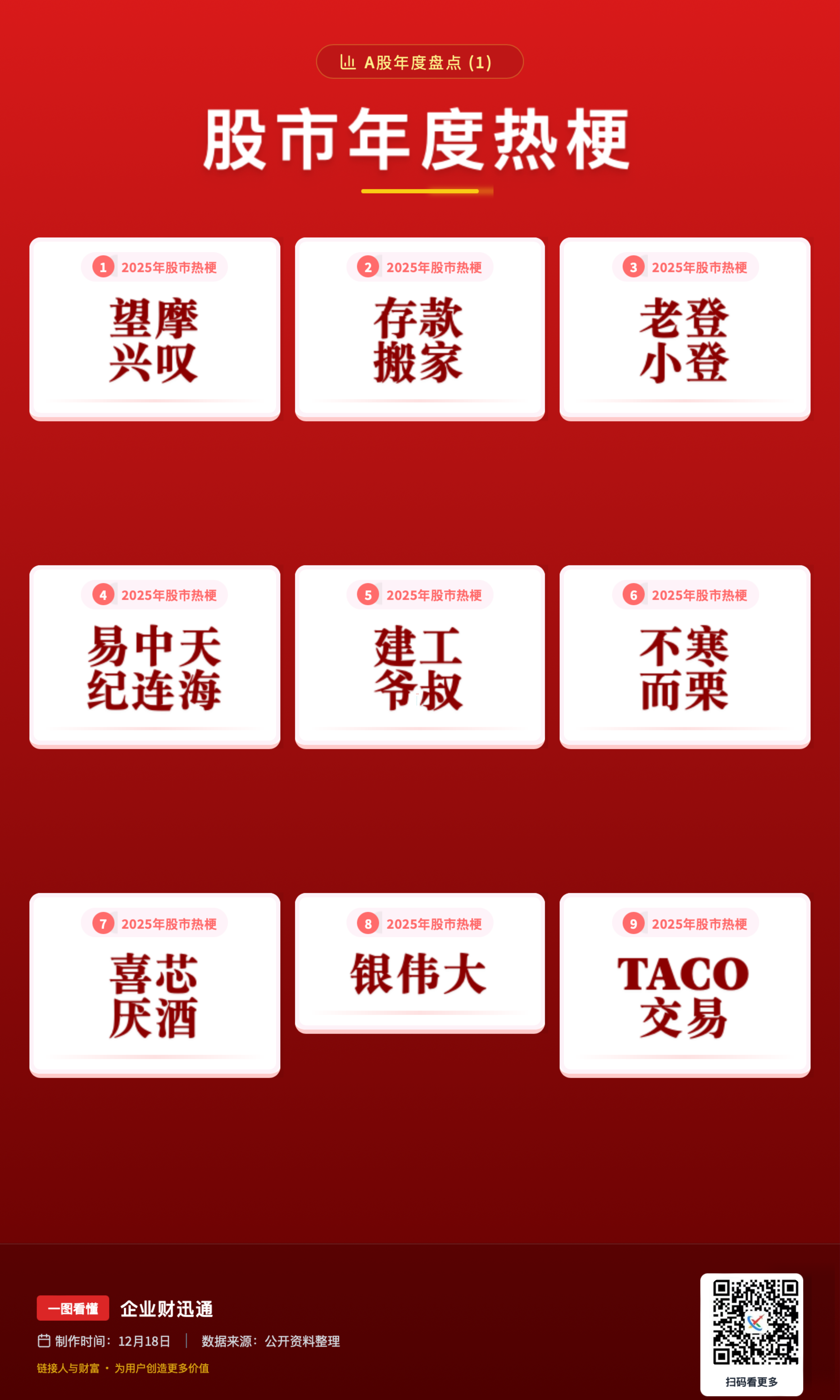 2025 年 A 股的 “情绪切片”:既体现了国产科技(AI、芯片)的行情狂欢、传统板块(银行)的逆袭,也反映了散户的情绪炒作、投资风格(老登 vs 小登)的对立,同时暗含市场 “追热点”“炒情绪” 的特征。