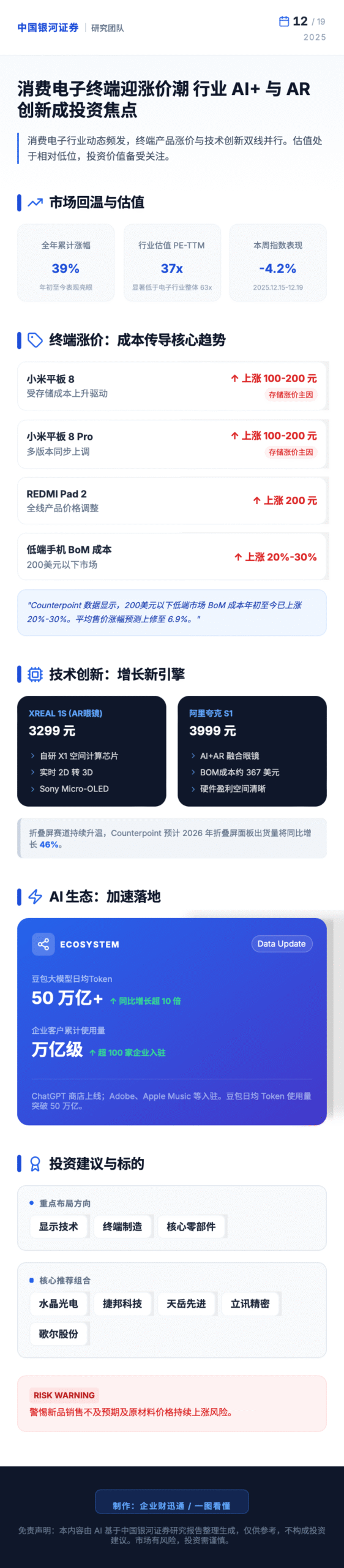中国银河证券指出,消费电子行业正迎来成本传导与技术革新的双重机遇,建议关注价格传
