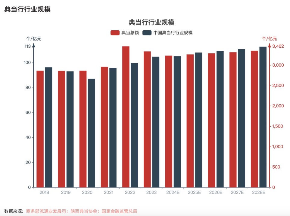 展望2024-2028年,典当行行业市场规模预计将从105.09亿元增长至112.68亿元,期间年复合增长率1.76%也将持续增长。增长动力主要来自两方面:一是业务多元化,从以往过度依赖房地产抵押转向金银珠宝、汽车、股权等多元质押品;二是中小微企业融资需求持续支撑,典当行作为便捷融资渠道的价值凸显。