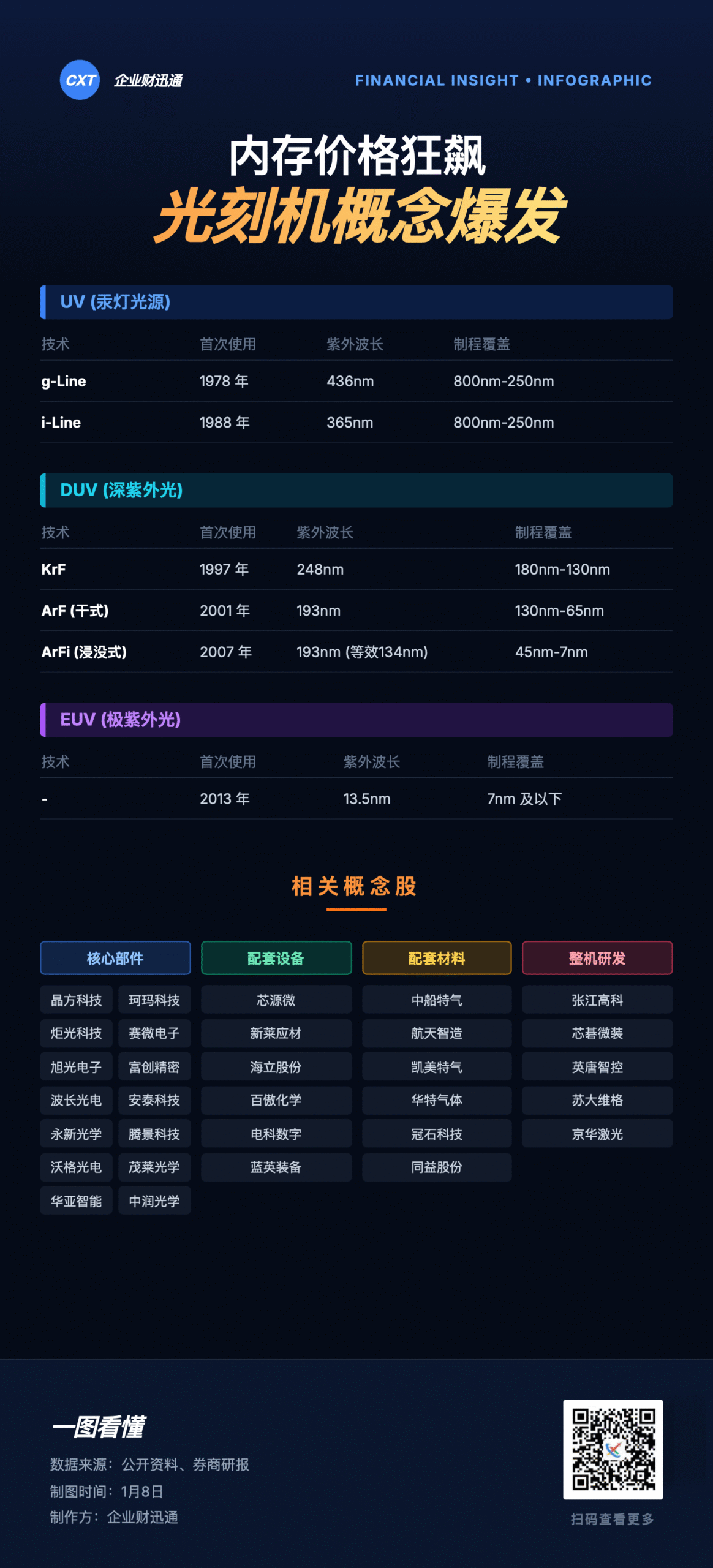 1月7日光刻机板块走强,芯源微20CM涨停,鼎龙股份涨超10%,多只相关个股跟涨。