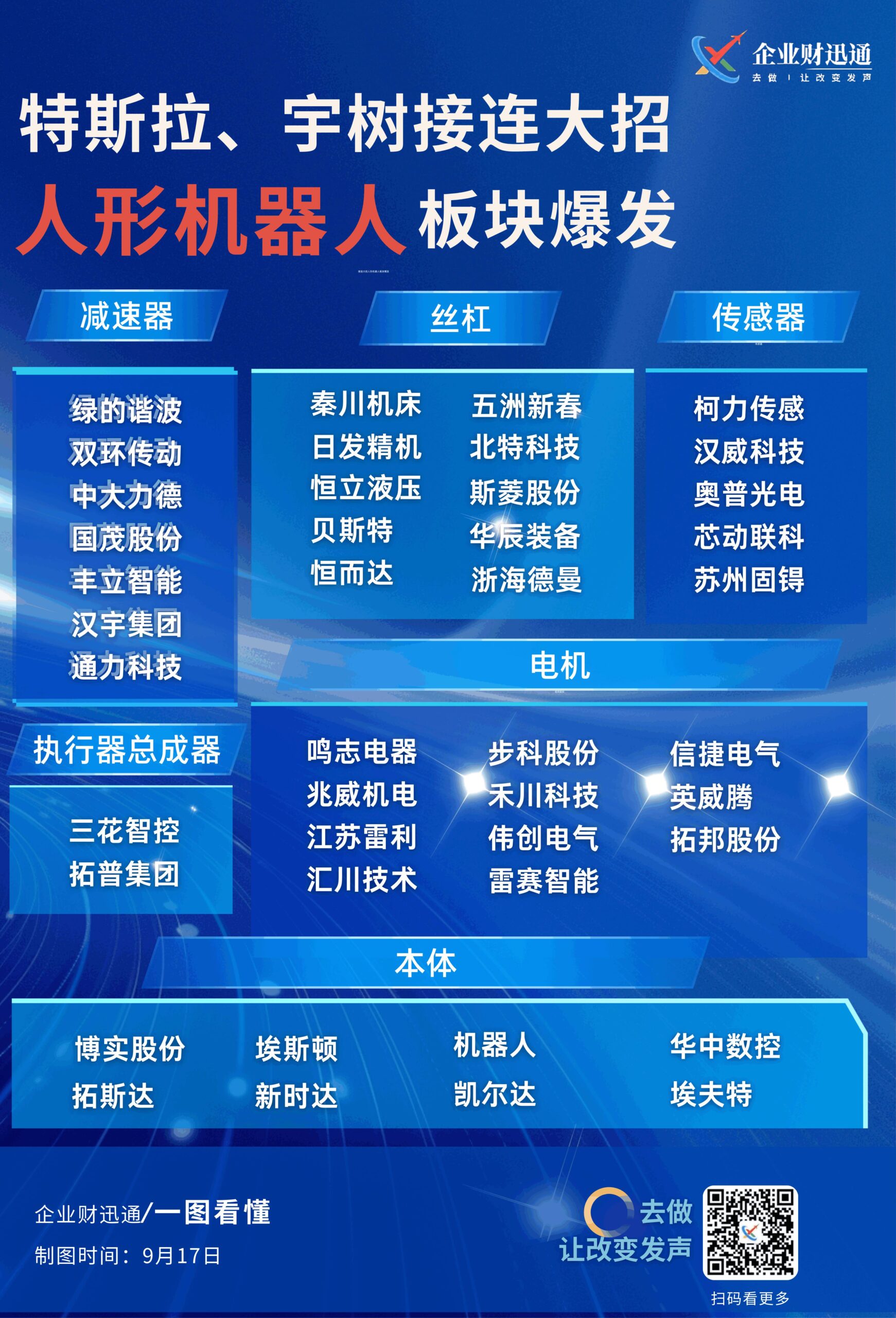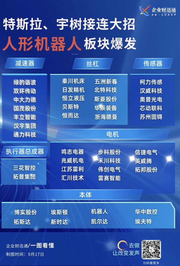 特斯拉、宇树接连有大动作,人形机器人板块随之爆发。减速器、丝杠、传感器等多个细分领域的众多企业参与其中,迎来发展机遇。